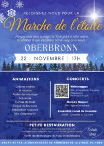 Cette année encore, la magie de Noël s’invite à Oberbronn avec la traditionnelle Marche de l’Étoile, organisée par la communauté de paroisses de la Zinsel du Nord, le samedi 22 novembre dès 17h.
